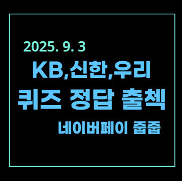 | [2025년 9월 5일] KB, SOL, 네이버 PAY 출석 퀴즈 (0) | 2025.09.05 |