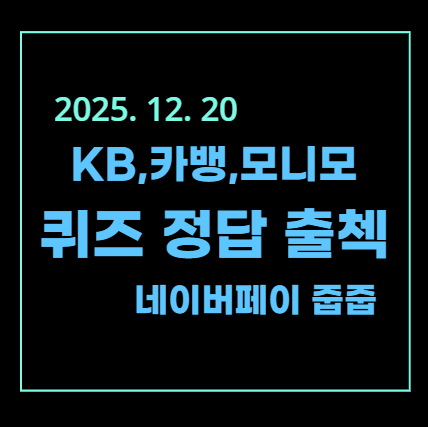 | [2025년 12월 21일] KB, 네이버 PAY 출석 퀴즈 (0) | 2025.12.21 |