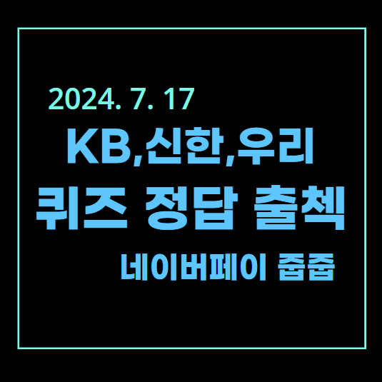 | [2024년 7월 15일] KB, SOL, 네이버 PAY 출석 퀴즈 (0) | 2024.07.15 |