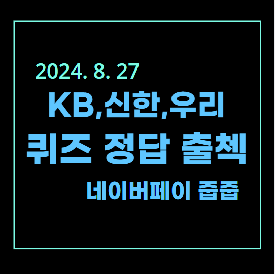 | [2024년 8월 26일] KB, SOL, 네이버 PAY 출석 퀴즈 (0) | 2024.08.26 |
