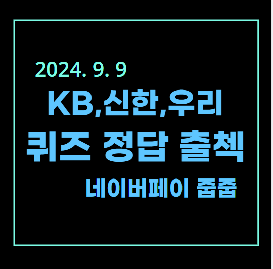 | [2024년 9월 11일] KB, SOL, 네이버 PAY 출석 퀴즈 (2) | 2024.09.11 |