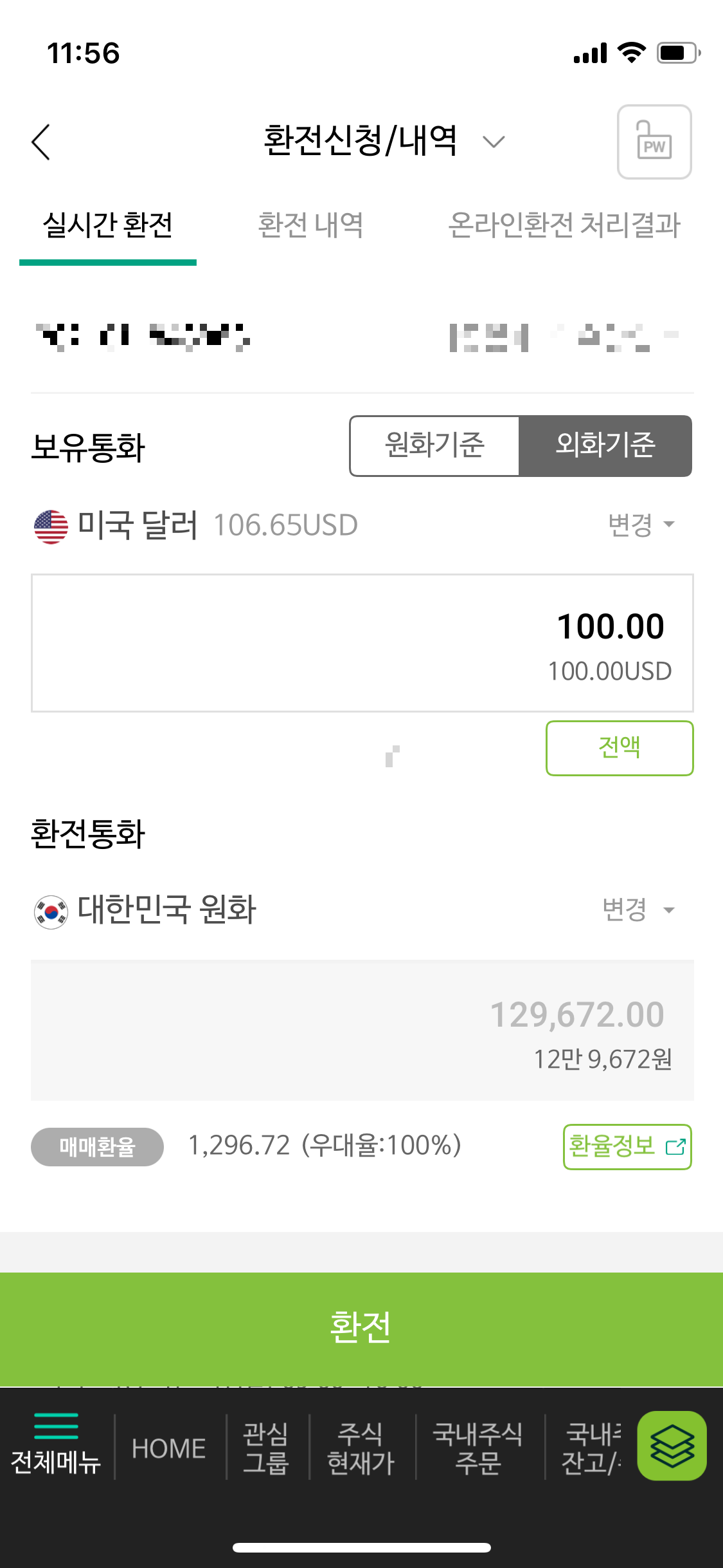 나무어플에서 실시간 환전 화면입니다.