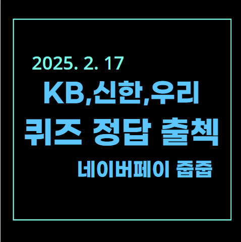| [2025년 2월 15일] KB, SOL, 네이버 PAY 출석 퀴즈 (0) | 2025.02.15 |