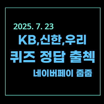 | [2025년 7월 25일] KB, SOL, 네이버 PAY 출석 퀴즈 (0) | 2025.07.25 |