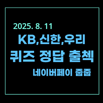 | [2025년 8월 4일] KB, SOL, 네이버 PAY 출석 퀴즈 (0) | 2025.08.04 |