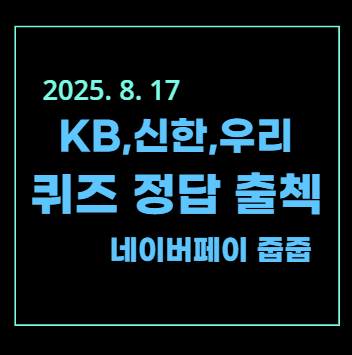 | [2025년 8월 16일] KB, SOL, 네이버 PAY 출석 퀴즈 (0) | 2025.08.16 |